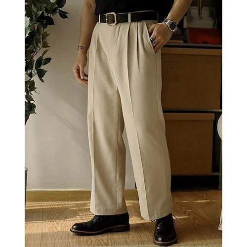 Homme pantalon de costume Pantalon Chino Boutons Poche Jambe droite Plein Confort Formel Soirée Travail Mode Style classique Noir Kaki Micro-élastique