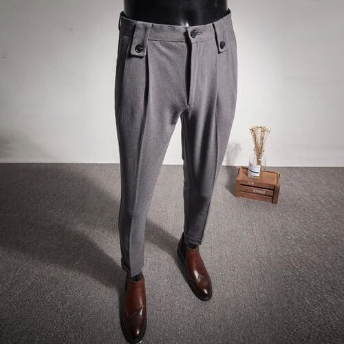 Wiaofellas Business Dress Pants Fashion Folds Casual Slim Fit Wedding Office Social Suit Pants Streetwear Trousers Costume Homme 28-36
